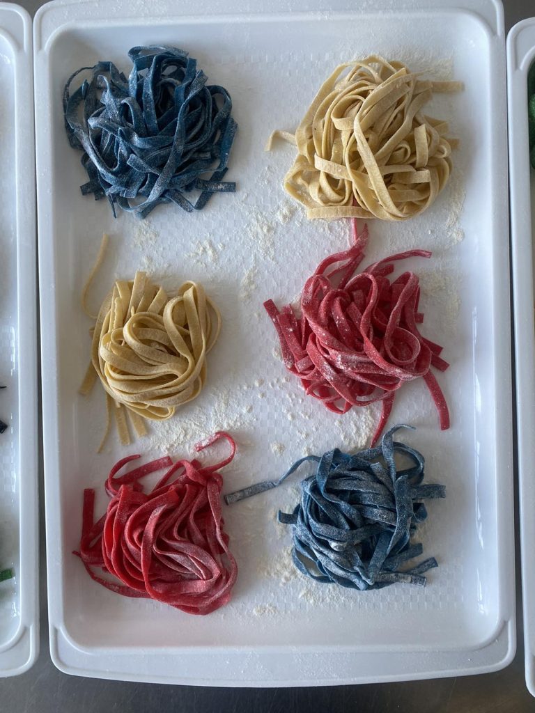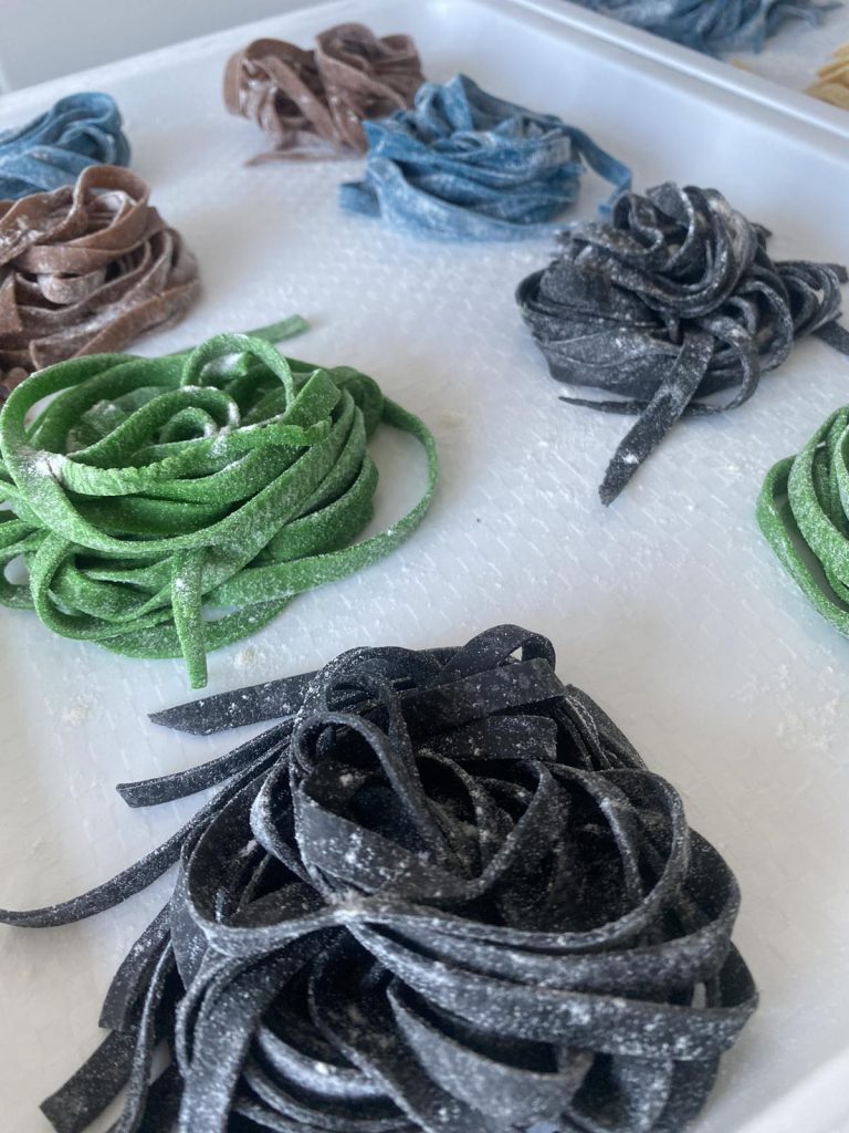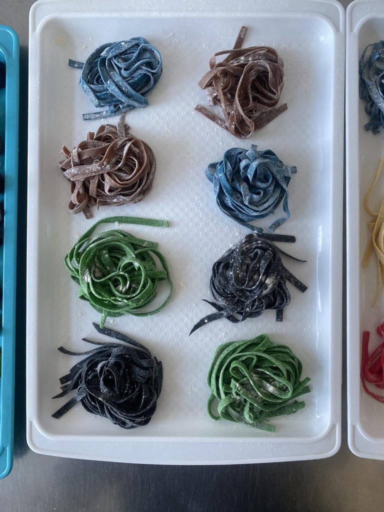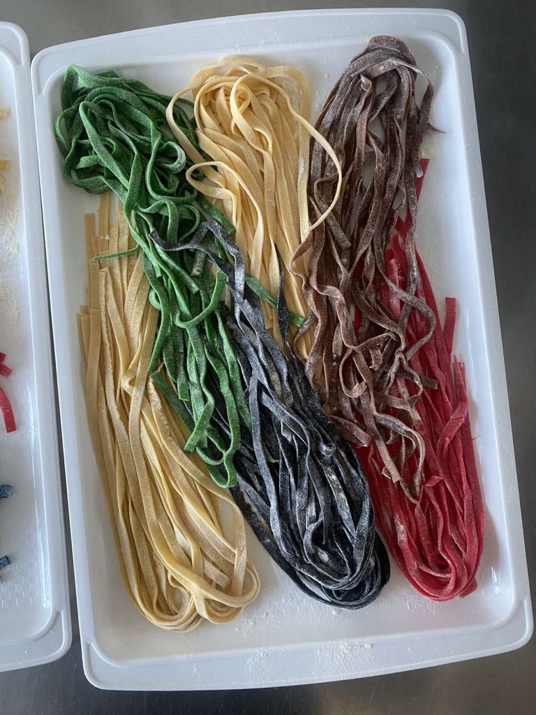 Napravite 3-4 loptice (u zavisnosti od veličine mašine). Naštelujte mašinu na veći razmak (od 5-9). Oklagijom pređite preko loptice do debljine do 5 mm. Pospite malo brašna preko testa da biste spečiti mogućnost lepljenja u razmaku mašine. Provucite testo kroz mašinu.