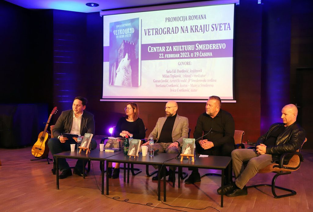 U okviru promocije romana govorili su Saša Edi Đorđević, književnik i muzičar, Milan Trpković, osnivač izdavačke kuće „Ključ“, Goran Jovšić, turistički vodič JP „Smederevska tvrđava“, Snežana Cvetković, kustoskinja Muzeja u Smederevu, i autor knjige „Vetrograd na kraju sveta“ Ivica Cvetković.