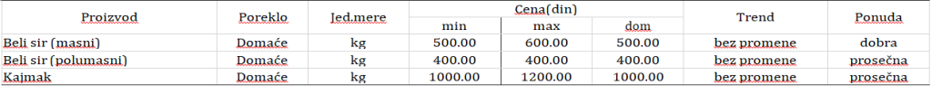 Kada su u pitanju cene mlečnih proizvoda, nisu zabeležene promene.