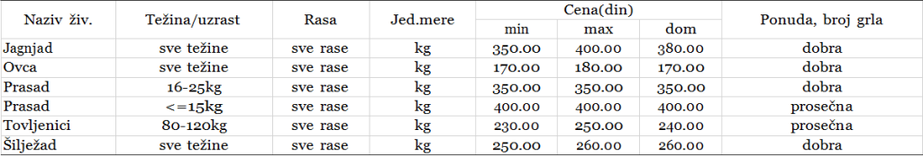 Cene jagnjadi, prasadi, ovaca, šilježadi i tvoljenika koje su zabeležili tokom prethodne nedelje reporteri Sistema tržišnih informacija poljoprivrede Srbije: