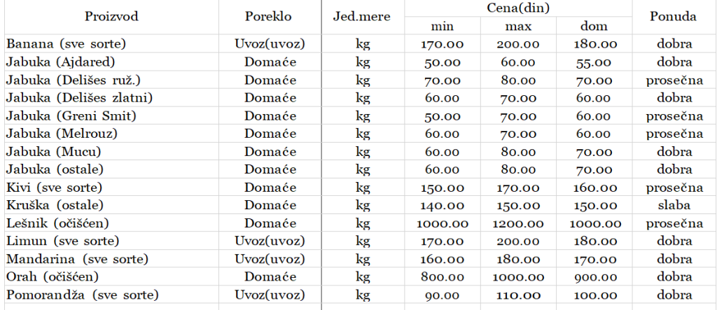 Na tezgama dobra ponuda jabuka (Ajdared i Delišes zlatni) i banana.