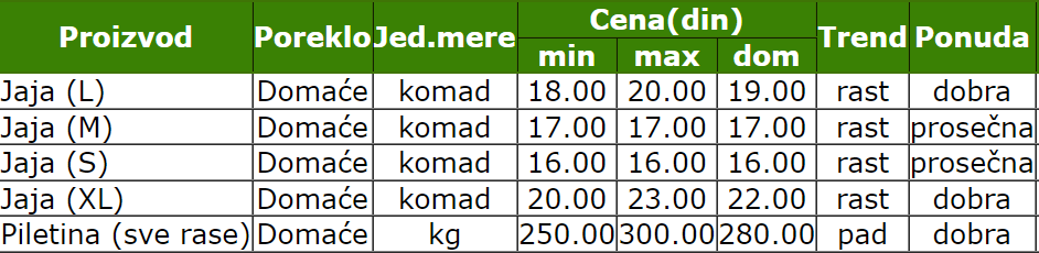 Uglavnom dobra ponuda i piletine i jaja.