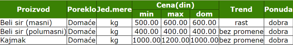 Zabeležena i dobra ponuda belog sira (masnog i polumasnog) i kajmaka.