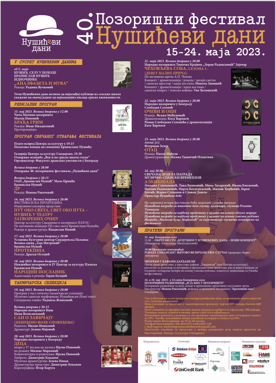 Share Facebook Twitter LinkedIn Pinterest EmailДраги читаоци , обавештавамо вас о програму 40. Нушићевих данаcentar za kulturu smederevo kultura smederevo nušićevi dani nušićevi dani smederevo pozorište smederevo smederevo smederevo dešavanja smederevo dogadjaji sta videti u smederevu Град смедерево центар за културу