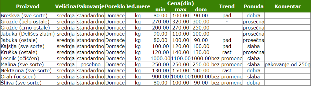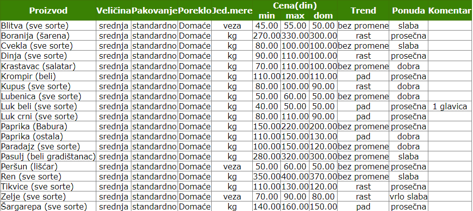 Home » Vesti » Cene voća i povrća (od 7.8. do 13.8.)