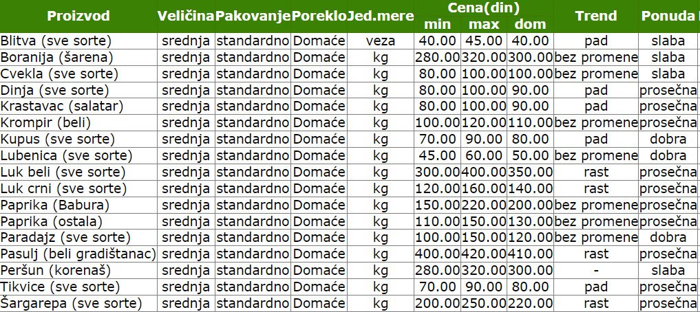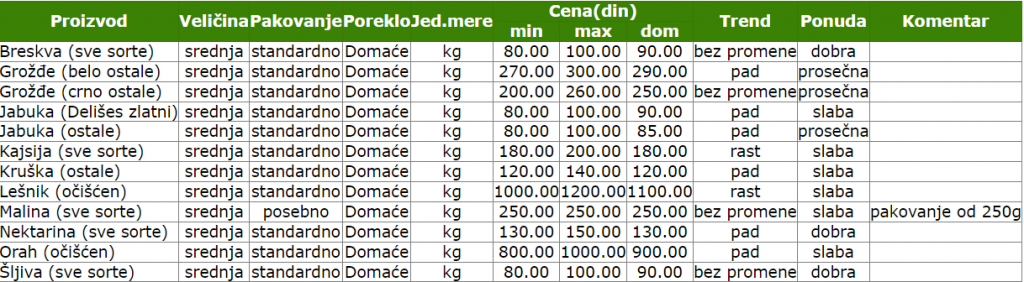 Share Facebook Twitter LinkedIn Pinterest EmailCene voća i povrća (od 14.8. do 20.8.)Izvor: stips.minpolj.gov.rsIzvor: stips.minpolj.gov.rsFoto: Nenad PavlovićFoto: Nenad Pavlovićcene povrća smederevo cene voća smederevo pijaca smederevo smederevo smederevo lokalne vesti smederevo najnovije vesti smederevo vesti zelena pijaca smederevo