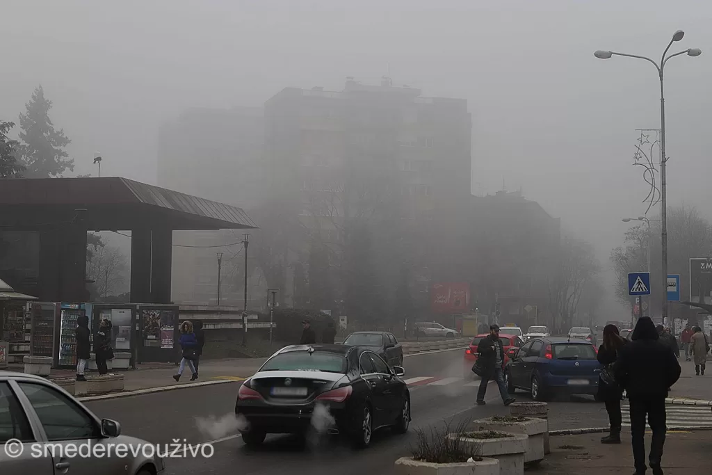 Vazduh u Smederevu je već u novembru počeo da bude težak i opasan za disanje, pogotovo u jutarnjim i večernjim satima, kada su i najveće očitane vrednosti čestica PM 2,5, PM 10, i takođe sumpor dioksida. U centru Smedereva je najveći uticaj kotlarnica, ukupno 14, a od toga 11 koristi mazut kao gorivo!!!