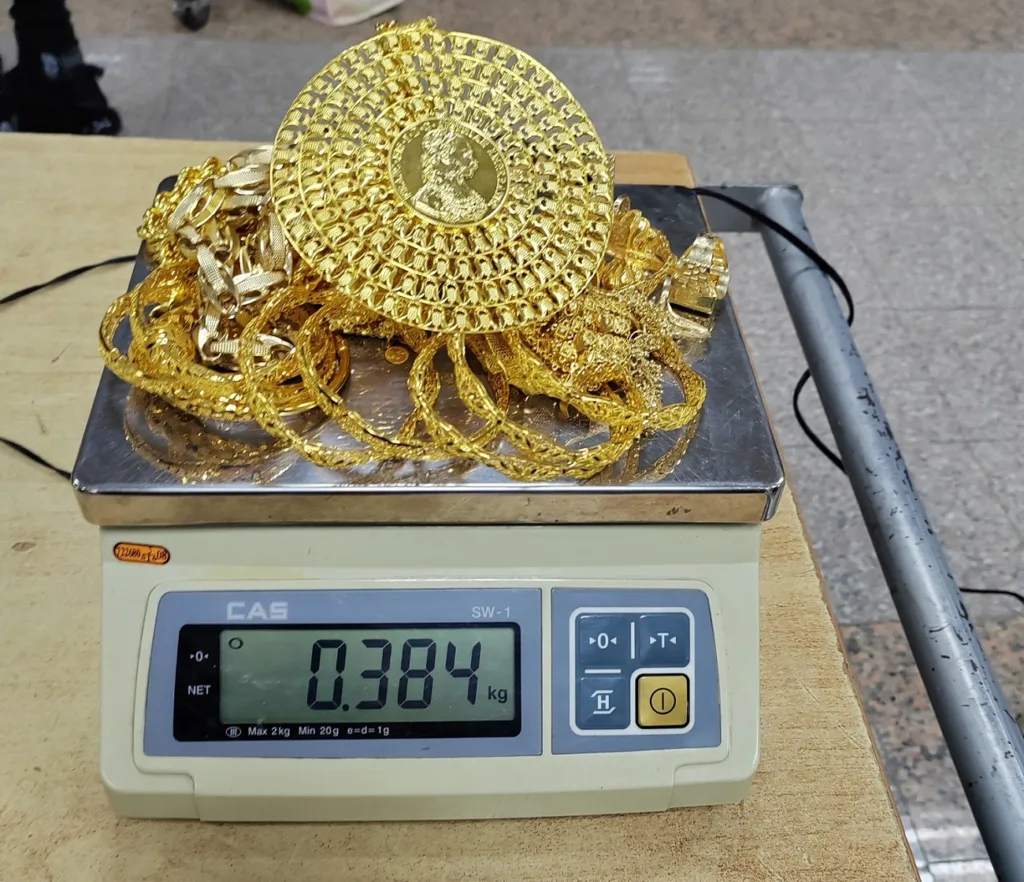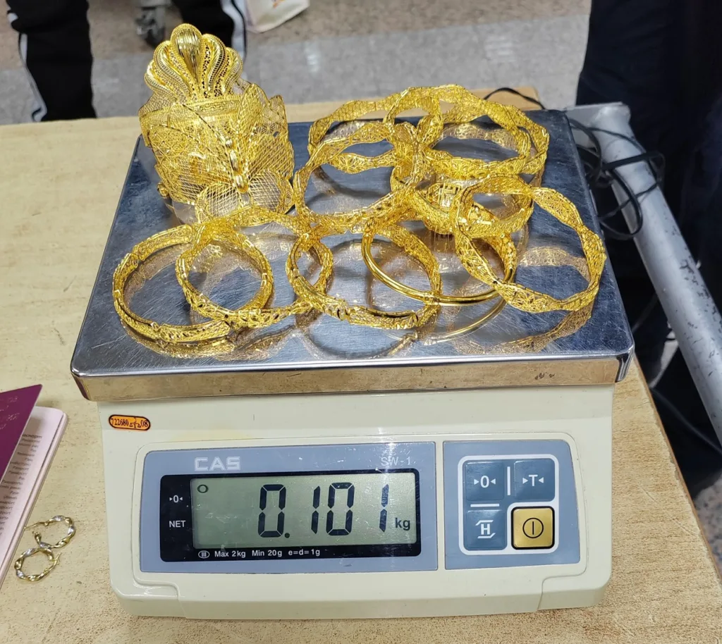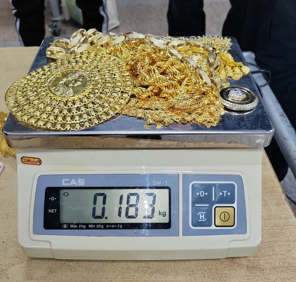 Usledio je detaljni pregled, tokom kog su carinici u rancu koji je jedna putnica nosila na leđima, zatekli neprijavljeni zlatni nakit: 14 prstena, 12 narukvica, 6 lanaca, 3 para minđuša i jedan ukras za kosu.