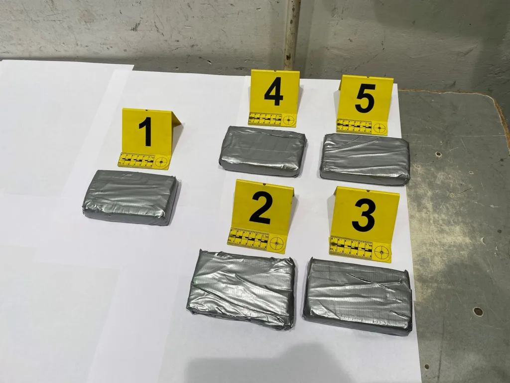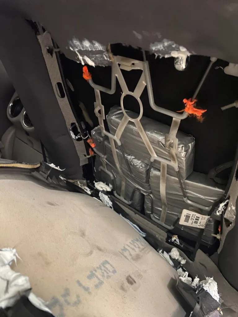 Tokom detaljne kontrole otkriveno je da se u naslonu suvozačkog sedišta krije pet paketa oblepljenih selotejp trakom, koji su bili ispunjeni praškastom materijom, za koju se osnovano sumnja da je reč o heroinu.