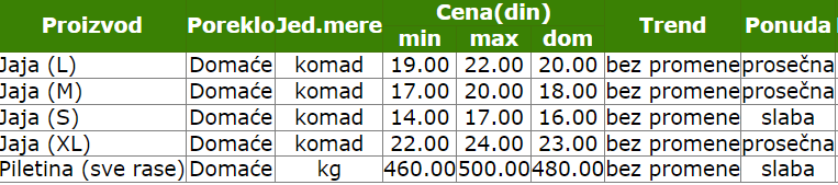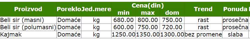Share Facebook Twitter LinkedIn Pinterest EmailNOVE CENE JAJA I PILETINEIzvor: STIPSNOVE CENE KAJMAKA I BELOG SIRA (MASNI I POLUMASNI)Izvor: STIPS