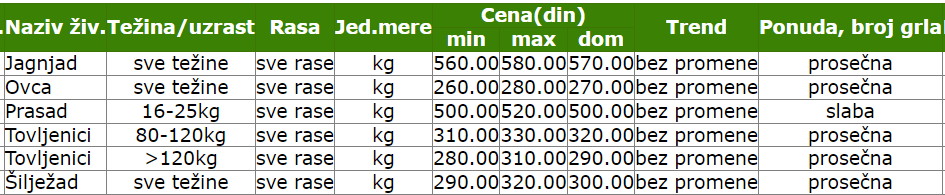 Share Facebook Twitter LinkedIn Pinterest EmailSistem tržišnih informacija poljoprivrede Srbije (STIPS) objavio je cene za period od 18.3. do 24.3.Izvor: STIPS