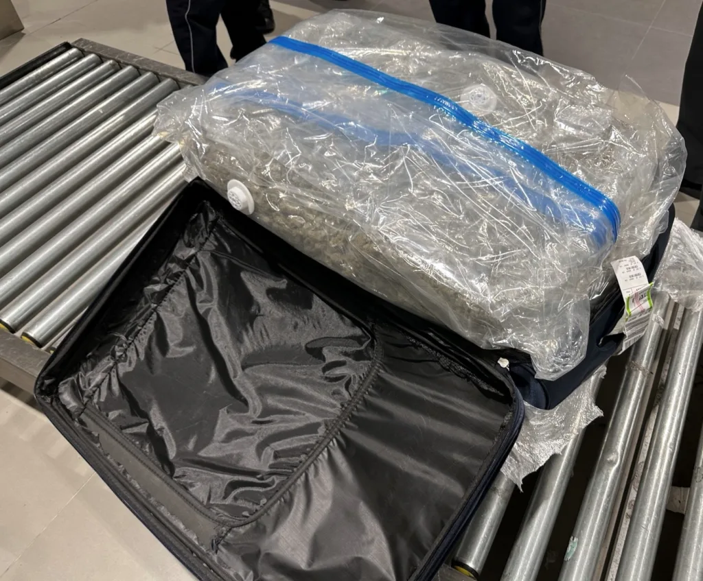 Carinski službenici su 9. aprila 2024. godine na graničnom prelazu Aerodrom Nikola Tesla, u saradnji sa policijom, sprečili pokušaj krijumčarenja preko 20 kilograma marihuane koju je jedan putnik zapakovao u svoj kofer.