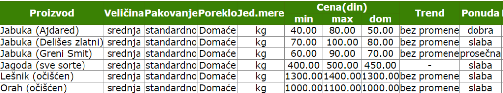 Kao i svake nedelje, reporteri Sistema tržišnih informacija poljoprivrede Srbije (STIPS) vredno su radili i zabeležili aktuelne cene voća i povrća na pijaci, za period od osmog do četrnaestog aprila.