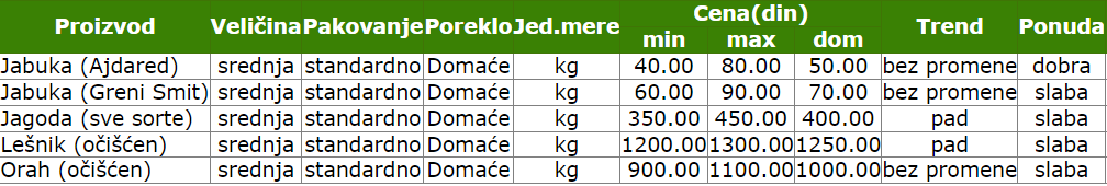 Slaba ponuda oraha, jagoda, lešnika…