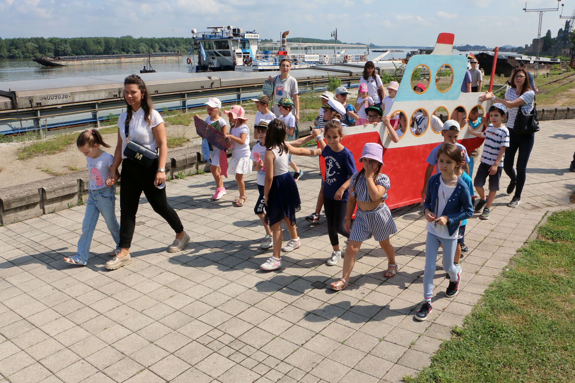 Kostimi, scenografija, kartonski brod, ribarske mreže, bojice, flomasteri i papir! Mališani Predškolske ustanove “Naša radost” danas su bili kreativni i u okviru druženja na smederevskom keju govorili su kroz igru i umetnost o Dunavu.