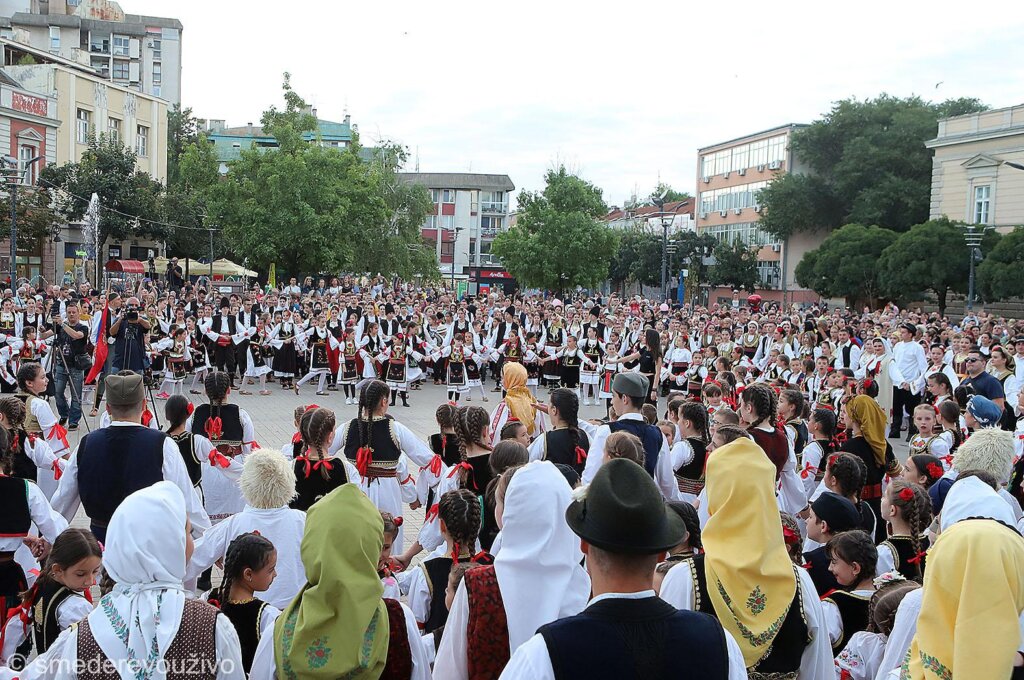 Članovi kulturno-umetničkih društava sa teritorije grada Smedereva sinoć su se kretali ulicom Kralja Petra I do Trga republike, a potom je usledilo zajedničko kolo, kao najava novog Kulturnog leta.