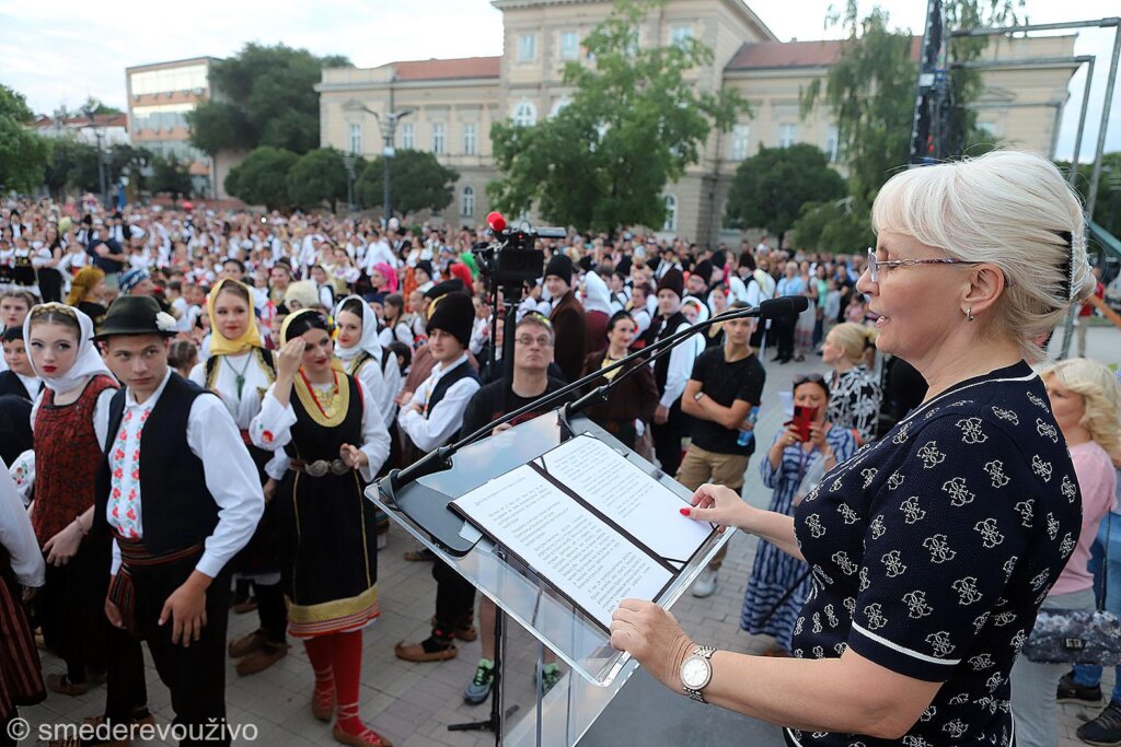Gradonačelnica Smedereva Jasmina Vojinović na svečanosti otvaranja manifestacije: “Kulturno-umetnička društva igraju ključnu ulogu u očuvanju i promovisanju našeg kulturnog nasleđa. Njihov rad nije samo očuvanje tradicije, već i stvaranje novih kulturnih vrednosti koje obogaćuju naše zajednice i povezuju nas sa našim korenima. U čak 24 kulturno umetnička društva, brojne ansamble svih uzrasta, Smederevo dokazuje koliko brine o očuvanju nasleđa i s ponosom podržava sve one koji svojim trudom, radom i talentom doprinose očuvanju tradicije”.