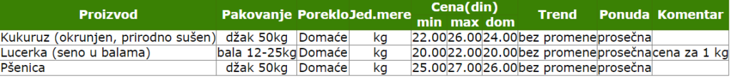 Share Facebook Twitter LinkedIn Pinterest EmailCene su zabeležene za period od 15. do 21. jula.Izvor: Sistem tržišnih informacija poljoprivrede Srbije (STIPS)