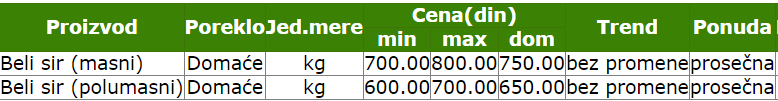 Cene belog sira se nisu menjale u drugoj polovini jula