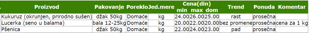 Reporteri Sistema tržišnih informacija poljoprivrede Srbije (STIPS) beleže jednom nedeljno cene žitarica u Smederevu. Ove cene zabeležene su u vremenskom periodu od 22. do 28. jula.