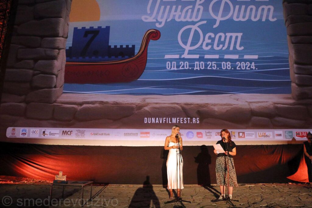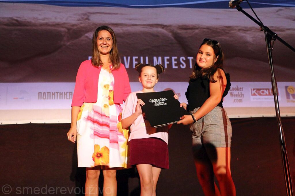 Aleksandra Mitić, članica Gradskog veća zadužena za resor prosvete i kulture uručila je priznanje Maši Ćirović i Viktoriji Vasiljević, mladim glumicama filma “78 dana”.