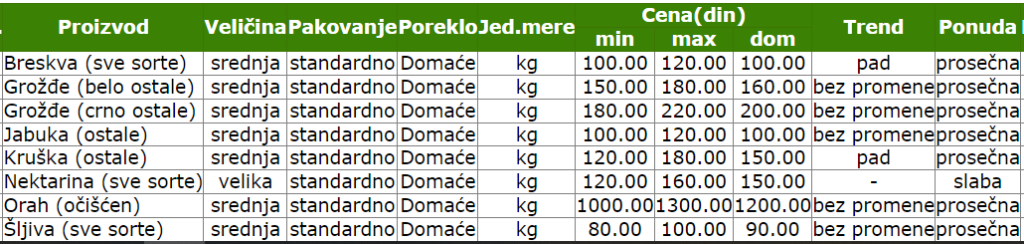 Izvor: Sistem tržišnih informacija poljoprivrede Srbije (STIPS)