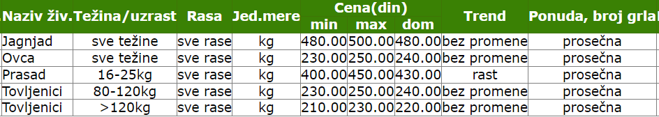 Share Facebook Twitter LinkedIn Pinterest EmailCene žive stoke u Smederevu koje su zabeležili reporteri Sistema tržišnih informacija poljoprivrede Srbije (STIPS)Izvor: Sistem tržišnih informacija poljoprivrede Srbije (STIPS)