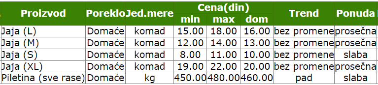 Home » Vesti » Cene jaja i piletine od 16. do 22. septembra