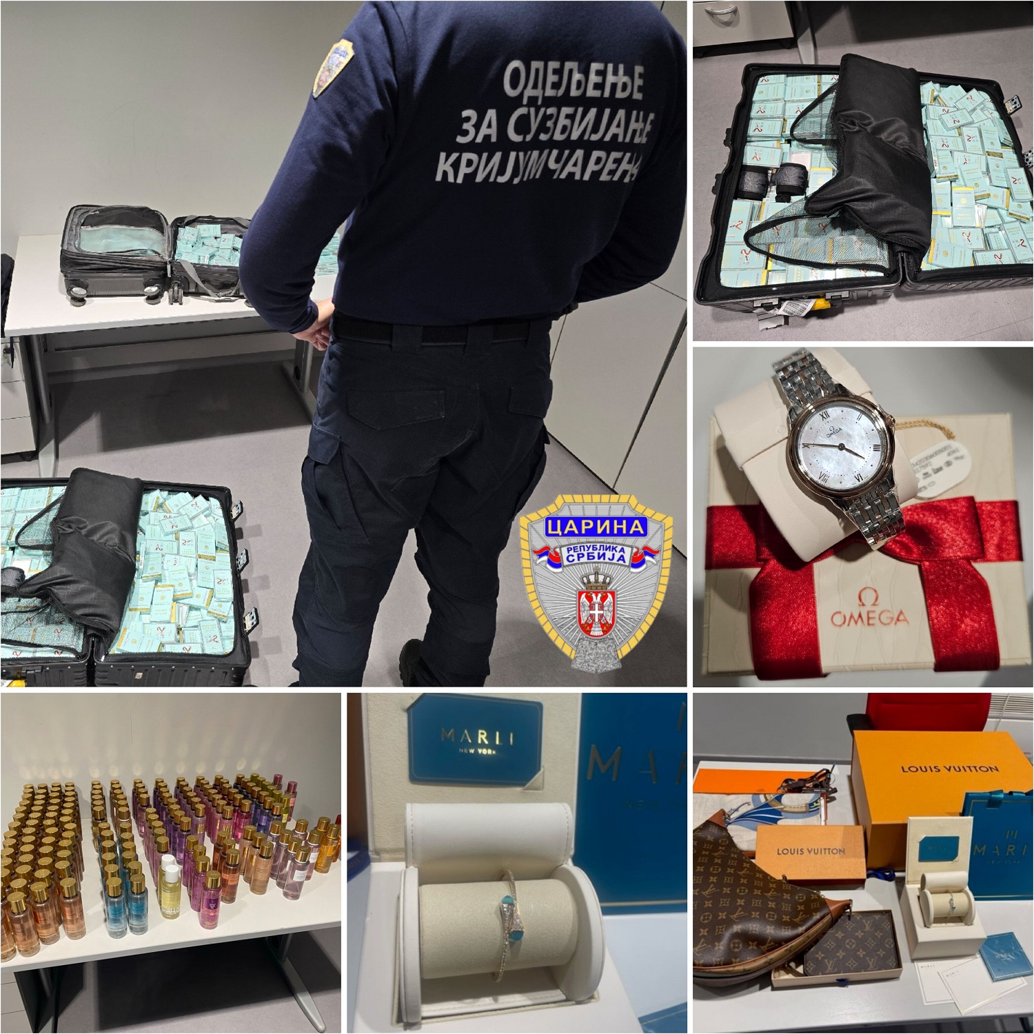 Kontrolom stranog državljanina koji je doputovao iz Dohe, 20. septembra utvrđeno je da se u njegovom prtljagu nalazi neprijavljena narukvica marke “Marli”, torba “Louis Vuitton” kao i jedna ešarpa od kašmira marke “Hermes”, ukupne vrednosti veće od milion dinara. Istog dana u Beograd je iz Njujorka doputova putnik u čijem se prtljagu nalazilo 148 toaletnih voda (body mist) marke “Vistoria’s Secret”.