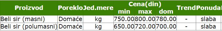 Cene belog sira od 7. do 13. oktobra