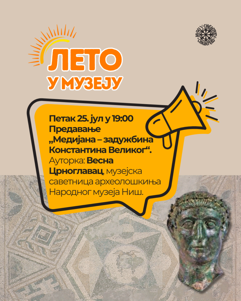 Позивамо вас на предавање које ће вам открити тајне једног од највреднијих археолошких локалитета античког доба – Медијане, који је некада био резиденција римског цара Константина Великог, а данас представља драгоцено културно наслеђе.