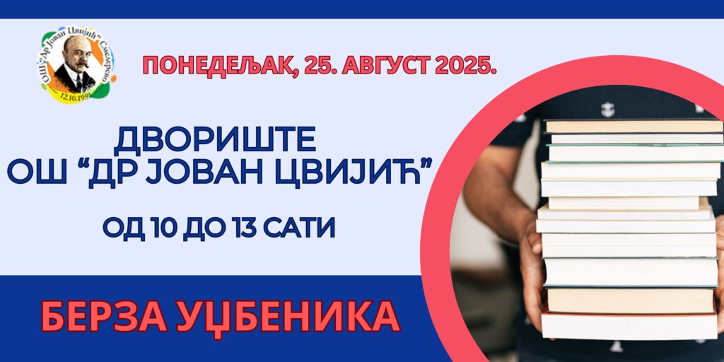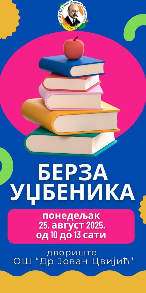 Osnovna škola „Dr Jovan Cvijić” iz Smedereva kao i druge osnovne škole i ove godine organizuje tradicionalnu berzu udžbenika, događaj koji već postaje nezaobilazna praksa krajem i početkom svake školske godine.