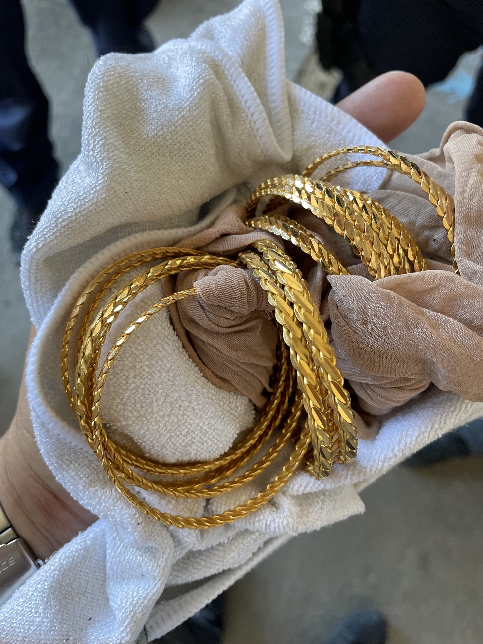 акумулатора, пронађено 16 златних наруквица, увијених у женске чарапе и алуминијумску