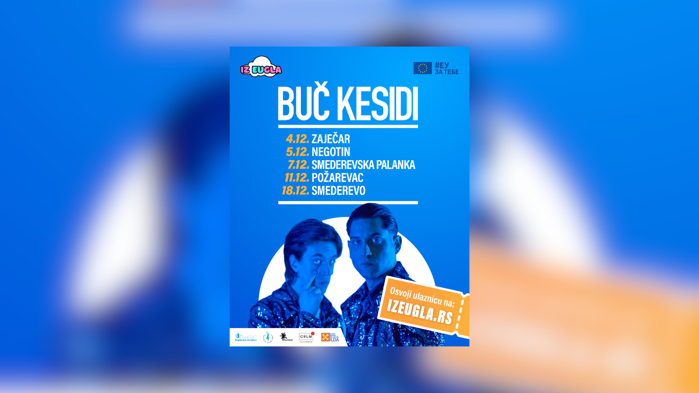 Popularni duo Buč Kesidi započinje decembarsku turneju po istočnoj Srbiji, u okviru koje će održati pet besplatnih koncerata u Zaječaru, Negotinu, Smederevskoj Palanci, Požarevcu i Smederevu.