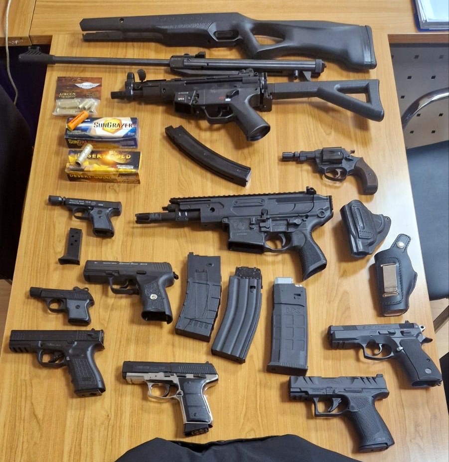 У коферу са гардеробом пронађен стартни пиштољ калибра 6мм, ваздушна пушка калибра 4,5мм, две гасне пушке калибра 4,5мм.