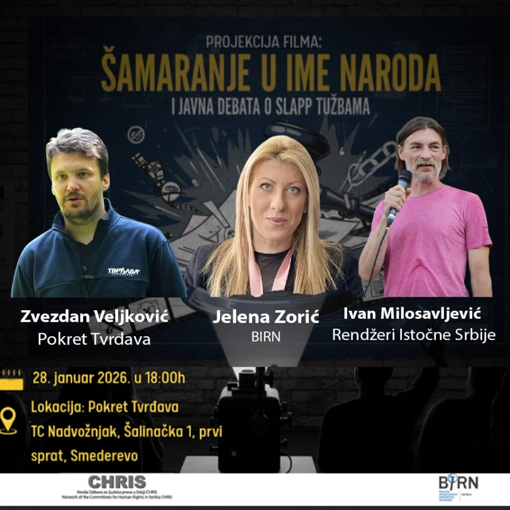U sredu, 28. januara, sa početkom u 18 časova, u prostoru Pokreta Tvrđava u TC Nadvožnjak u Smederevu, biće održana projekcija dokumentarnog filma „Šamaranje u ime naroda“, novinarke Jelene Zorić, nakon koje sledi javna debata.