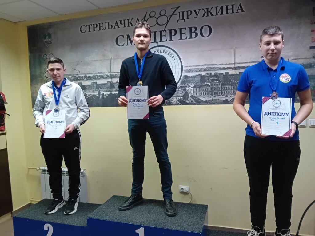 У категорији јуниора пиштољем иза Пејова остали су стрелци из Стрељачког клуба „ГТ“ из Лесковца Данило Поповић и Филип Петровић. У категорији јуниора пушком испред и иза Младеновића били су стрелци из СК „Чика Мата“ из Крагујевца Јован Станковић и Павле Младеновић.