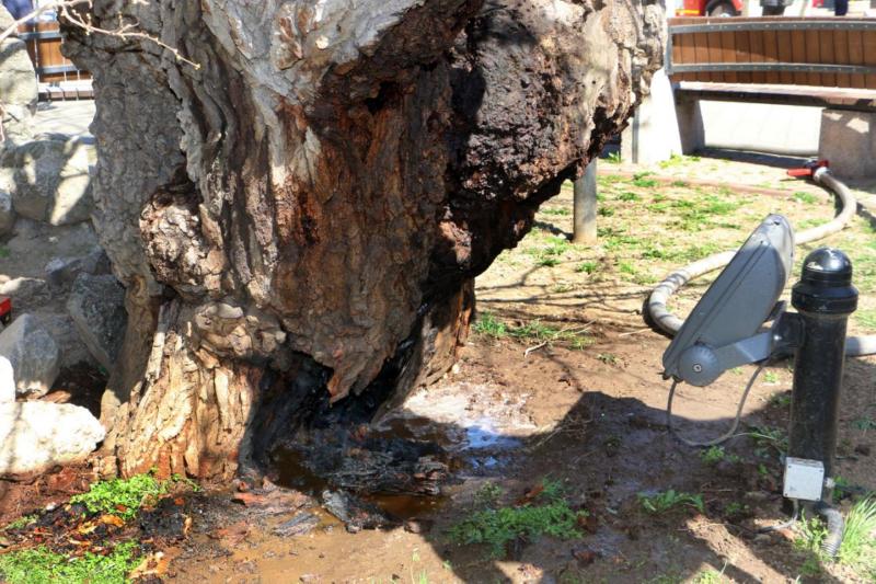 пожар је угашен, али су на стаблу остале видљиве последице.