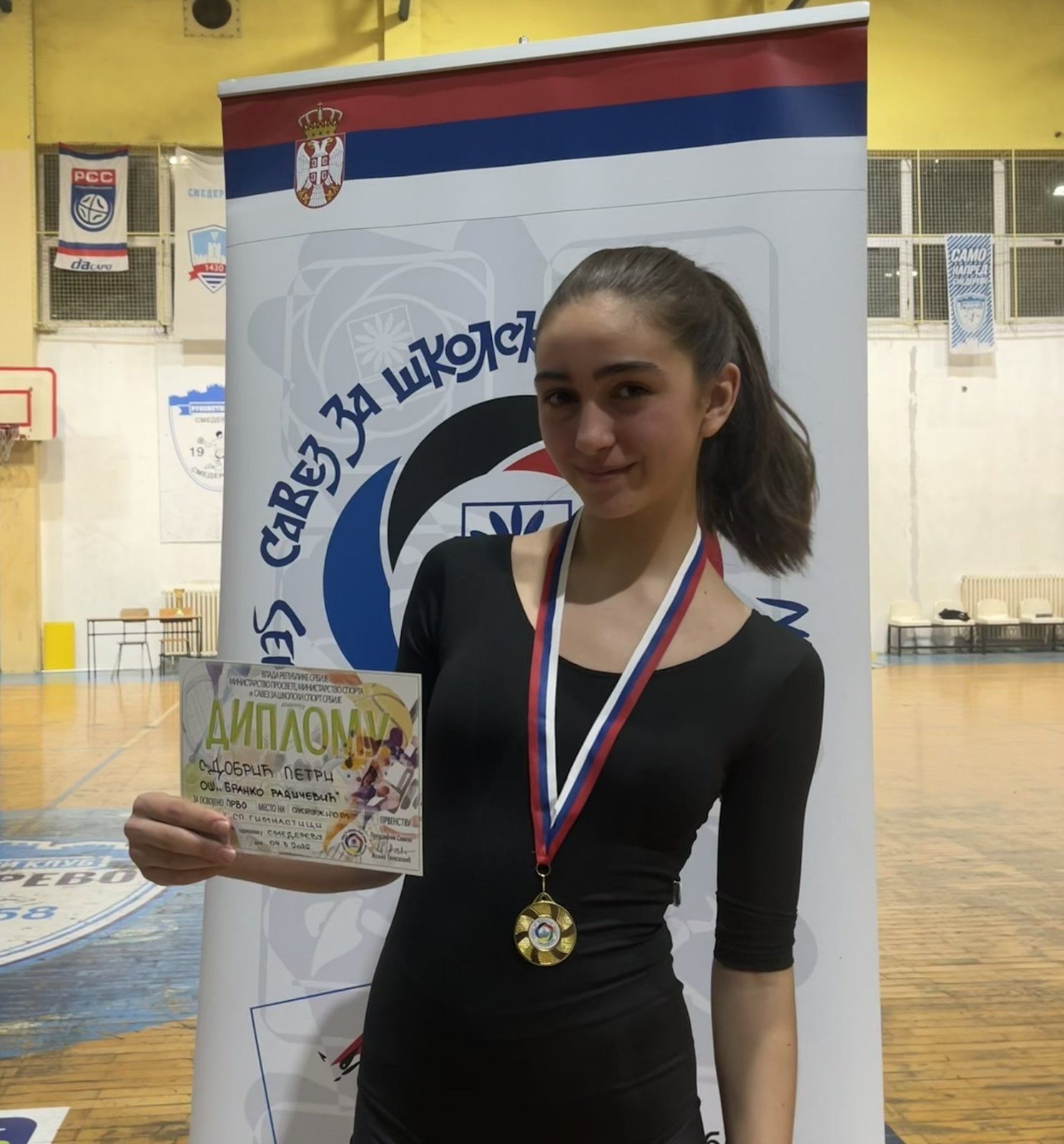 На међуокружном такмичењу у гимнастици, одржаном у Костолцу, Петра Добрић, ученица Основне школе „Бранко Радичевић“, остварила је изузетан успех изборивши пласман на државно такмичење.