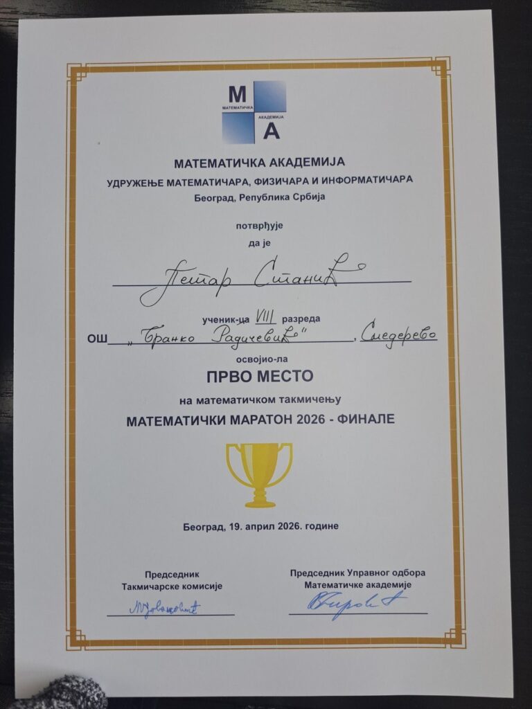 Petar Stanić, ponos osnovne škole “ Branko Radičević “ iz Smedereva